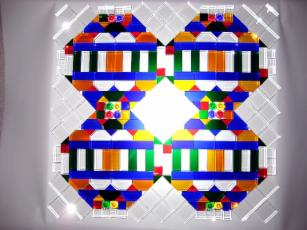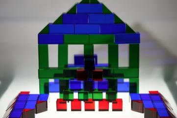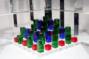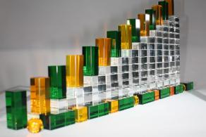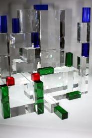 Spielereien mit optisch reinem Glas und vier Repliken des berühmten Glasbauspiel von Bruno Traut.