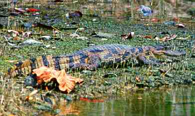 Am Hillsborough Dam Lake sitze ich auf der Staumauer und warte auf die Sußwasser-kaimane. Mal liegen sie faul auf den schmalen Uferstreifen, mal liegen sie genau vor mir unterhalb der Staumauer im Wasser.